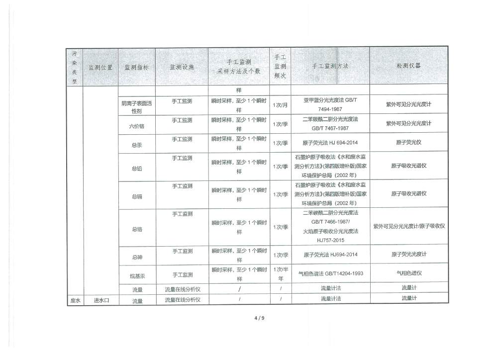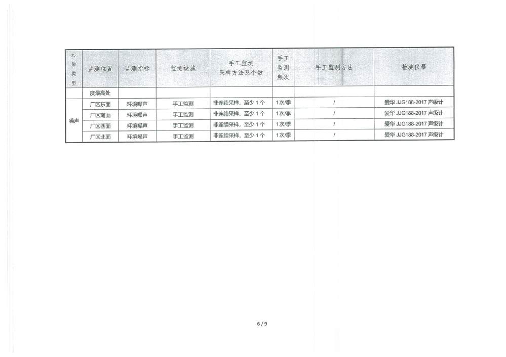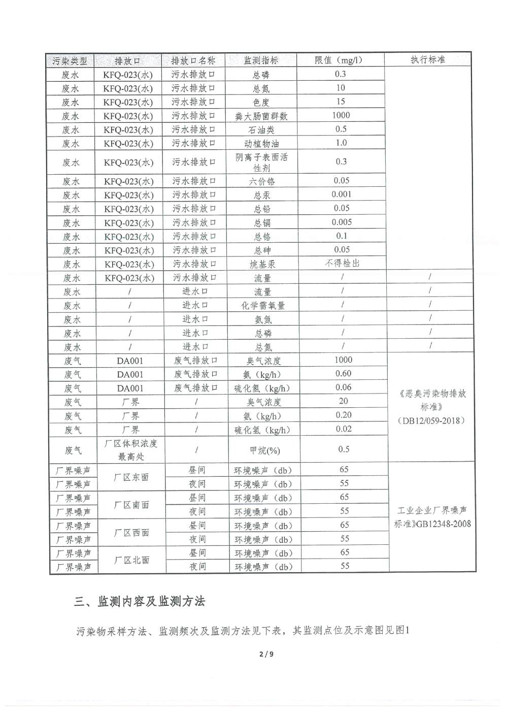 PH 6.70 6-9 92 100 COD 20.91 30 92 100 BOD5 2.29 6 92 100 SS 3.11 5 92 100 TP 0.19 0.3 92 100 TN 6.36 10 92 100 NH4-N 0.31 1.5(3.0) 92 100 色度 2.00 15 92 100 糞大腸菌群 17.02 1000 92 100 石油類 0.177 0.5 3 100 動植物油 0.247 1.0 3 100 陰離子表面活性劑 0.245 0.3 3 100 六價鉻 0.002 0.05 1 100 總鉻 0.015 0.1 1 100 總鎘 0.00034 0.005 1 100 總砷 0.0021 0.05 1 100 總鉛 0.0129 0.05 1 100 總汞 0.00031 0.001 1 100 出水達標率100% 2025年2季度 排放量(噸) 1 化學需氧量 2 氨氮(NH3-N) 2.50 3 總氮(以N計) 51.38 4 總磷(以P計) 1.53 3.防治污染設施的建設和運行情況